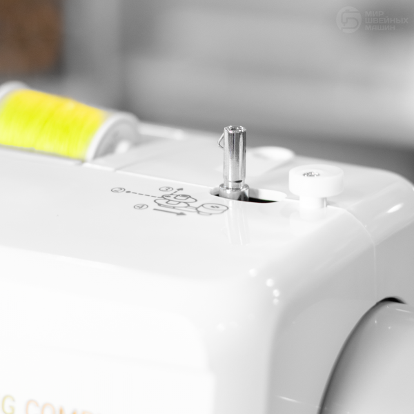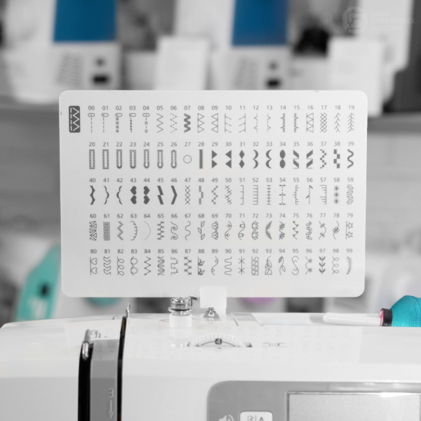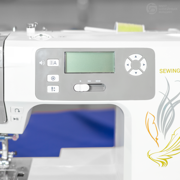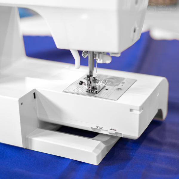 Конструкция машины включает горизонтальный челнок и классический нитевдеватель, есть рукавная платформа и подсветка светодиодом. Среди выполняемых операций предусмотрено семь видов прорезной петли, а также символы английского алфавита и цифры. На экране будут видны выбранные настройки. Кнопки на корпусе позволяют регулировать скорость строчки, начинать работу без педали, позиционировать иглу и выполнять реверс.