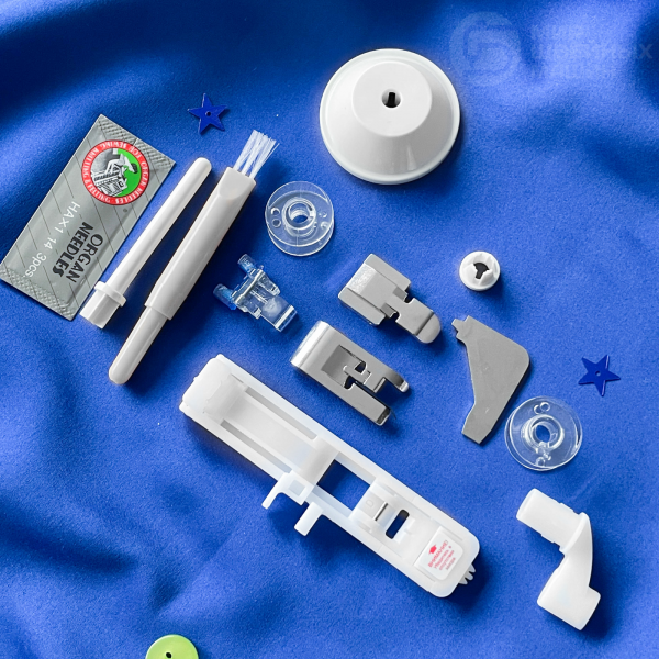 Машина поставляется с удобным приставным столиком и набором аксессуаров, включая чехол.