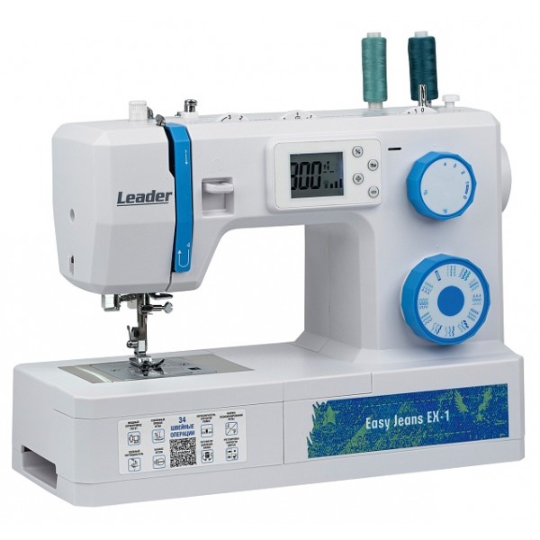 Leader Easy Jeans EX-1 - электронная модель рассчитанная на пошив материалов разной плотности, включая джинс. Модель с мощным двигателем на 100 Вт и регулировкой давления лапки.