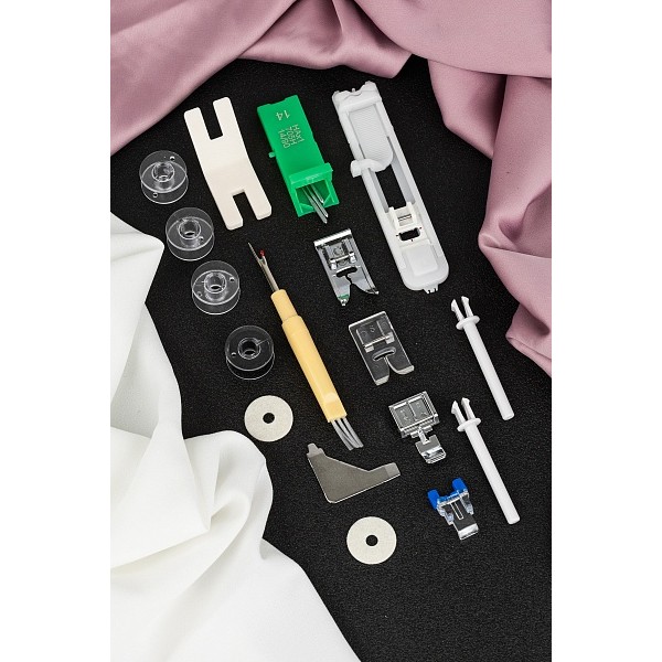 В комплект поставки входят основные лапки, инструменты для обслуживания и мягкий чехол.