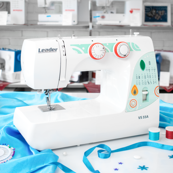 Leader VS 55a - современная модель с вертикальным челночным устройством и управлением механического типа. Надежная и компактная машина с хорошей подборкой операций по разумной цене.