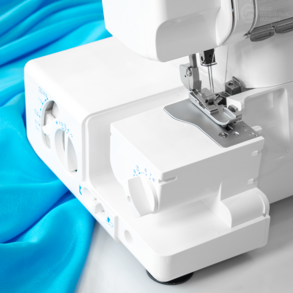Оверлок выполняет швы разной ширины, включая ролевой. Вы сможете отрегулировать длину строчки, а также ширину обрезки припуска. Отличные отзывы получил мусоросборник, который позволяет поддерживать чистоту на рабочем месте. Яркая подсветка поможет выполнить шов аккуратно и точно. Для пошива узких деталей предусмотрена небольшая рукавная платформа. Скорость строчки модели 1200 ст/мин.