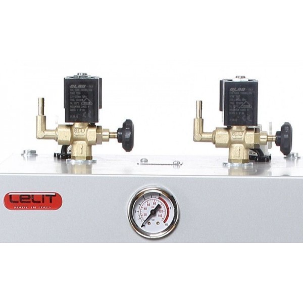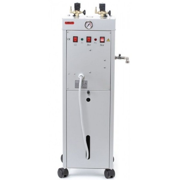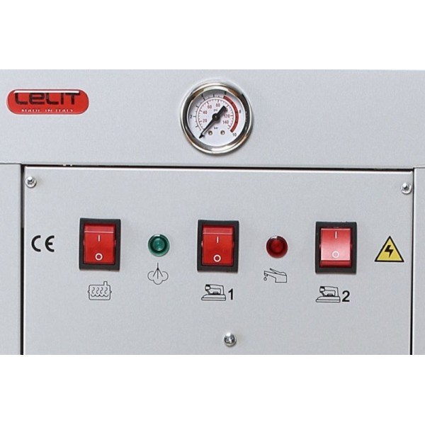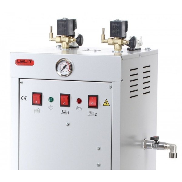 Lelit PGAUT05 - промышленный парогенератор, рассчитанный на непрерывное использование и подключение двух утюгов. Модель имеет большой бойлер на 5 л, изготовленный из нержавеющей стали. Предусмотрены все необходимые меры безопасности - датчик давления, защитный клапан и термостат. Подаются сигналы о готовности к работе и нехватке воды.