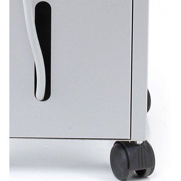 Прочный корпус из окрашенного метала оснащен роликами для перемещения.