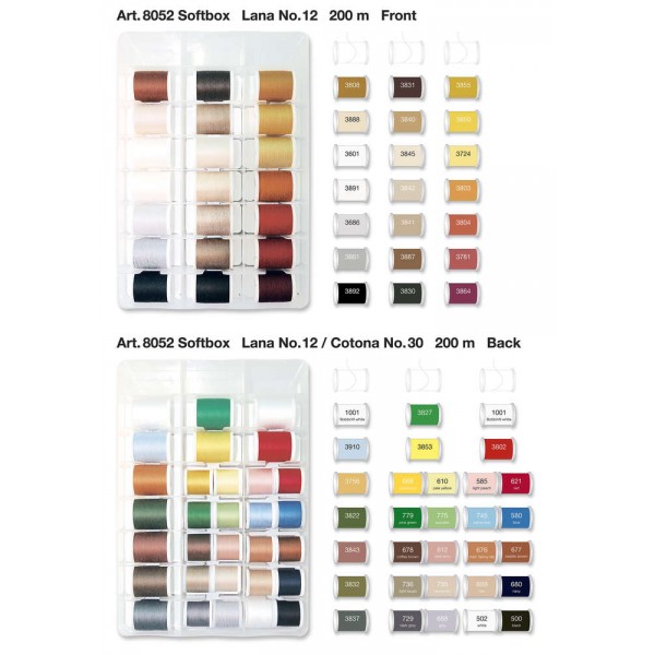 В комплект входят 30 цветов шерсти и 20 цветов хлопка (по 200 метров), а также две катушки нижней нити по 1500 метров, специальная игла и CD_диск с дизайнами для вышивки.