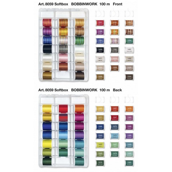 10 оттенков мультиколор, 30 обычных цветов (по 100 м в катушке).