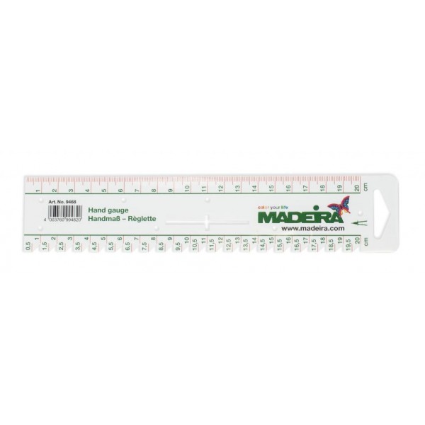 Удобный инструмент для разметки ткани. Есть разметка для пуговичных петель. Материал термоустойчив (например, к утюгу).