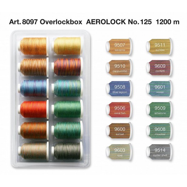 Универсальные прочные нитки для работы на оверлоке. Двенадцать цветов мультиколор в блистере.