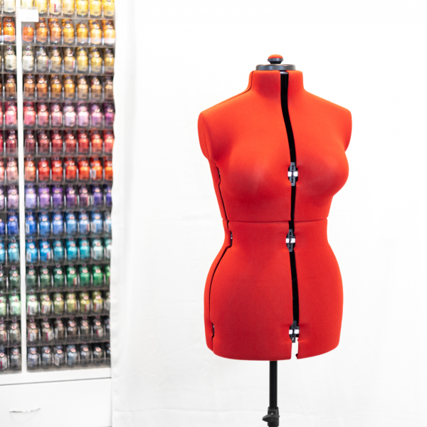 Портновский манекен выполнен из пластика и обтянут тонким поролоном, а затем нейлоном. Такая поверхность обеспечивает качественное сцепление с любой тканью, на неё легко наколоть деталь булавками или сделать меловую отметку. Подставка сделана из металлических труб (полых). Чтобы точно подогнать манекен, отрегулируйте обхваты талии и бёдер, шеи и груди, а также установите нужный рост и длину по спинке.