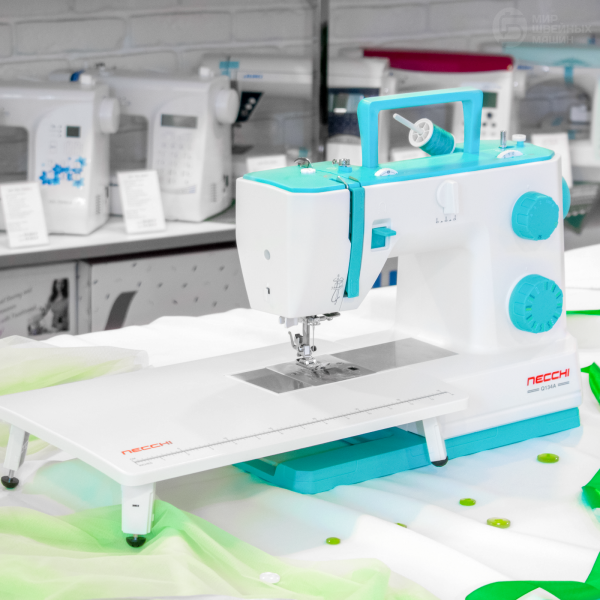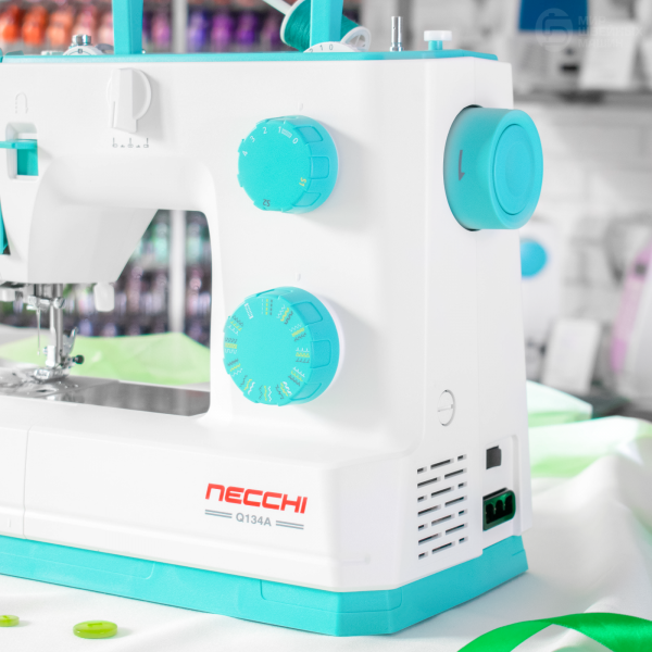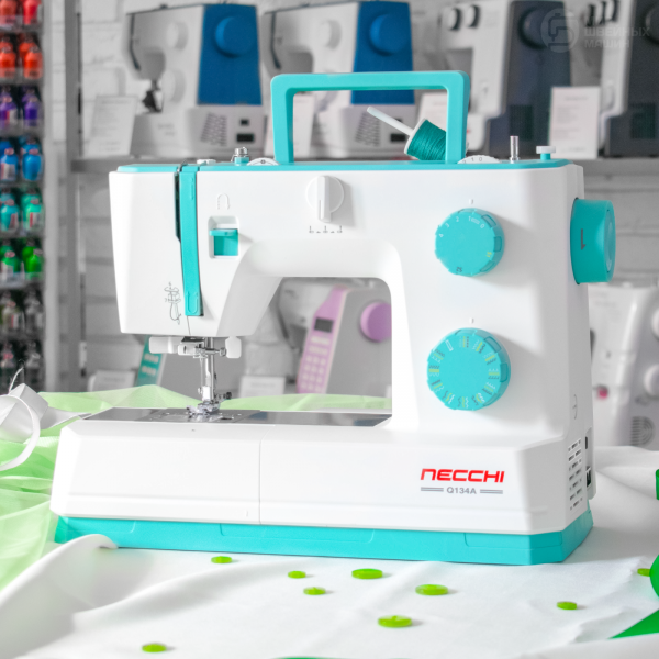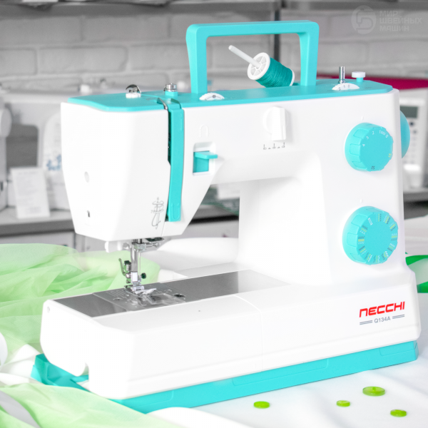 Necchi Q134A – надежная электромеханическая модель для пошива изделий из ткани разной плотности. Производитель позиционирует её как машину профессионального класса. Отличительными характеристиками эксперты называют мощный двигатель и столик в комплекте. Также стоит отметить современный яркий дизайн.