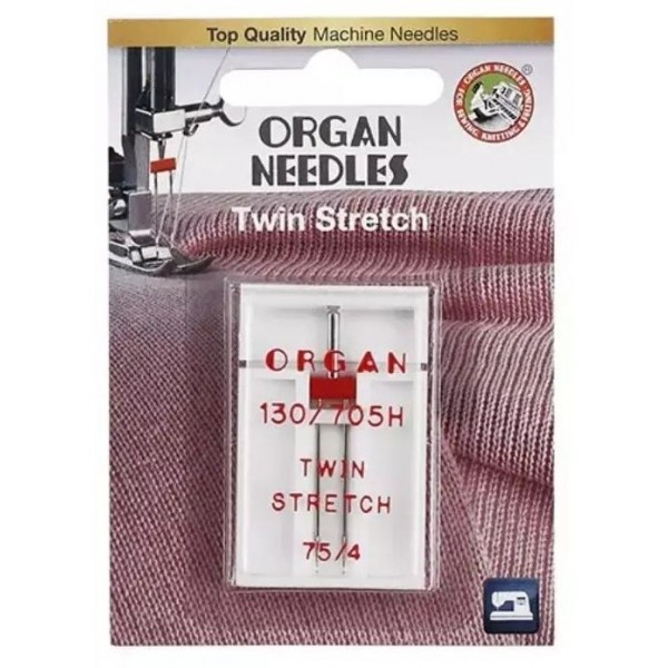 Для выполнения двойной строчки по эластичным тканям установите специальную иглу. Внутреннее расстояние между остриями – 4 мм.