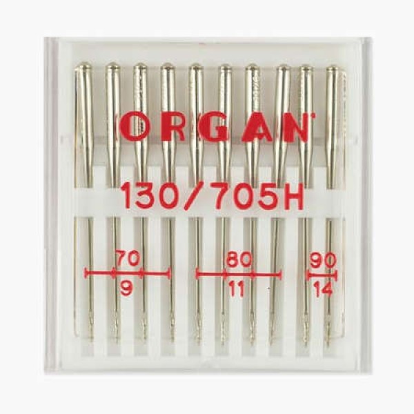 Комплект игл наиболее используемых размеров, для тонких и плотных материалов, универсального назначения. Десять штук.