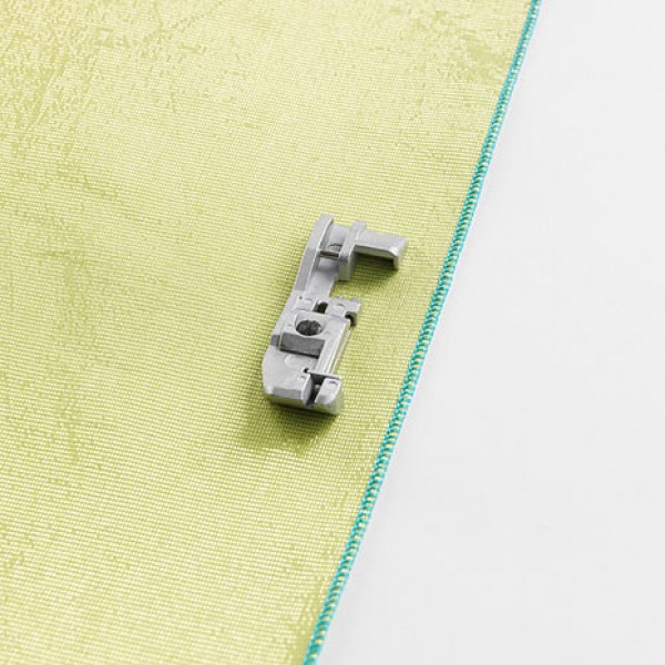 Лапка работает со шнурами или пряжей до 1 мм толщиной. Этот приём позволяет получить жёсткий шов, что часто используется в вечерних и свадебных платьях.