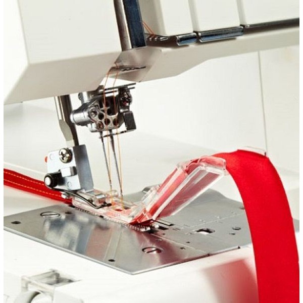 Используя специальную лапку можно сшить аккуратные шлёвки за считанные минуты! Фирменная лапка изготовлена из прозрачного пластика и пригодится для пошива бретелек или поясов.
