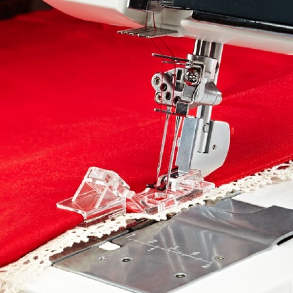 Пришить кружево одновременно с подгибкой края можно с помощью этой лапки.