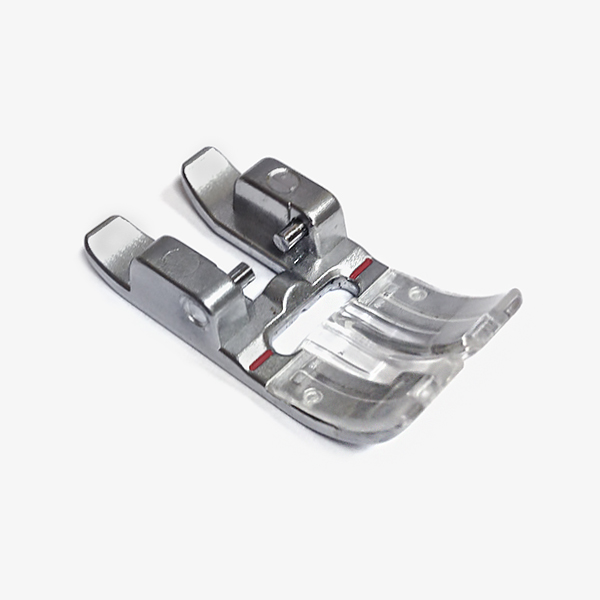 Лапка с отметками для точного размещения декоративных швов. Конструкция подошвы помогает лёгкому продвижению на плотном застиле.