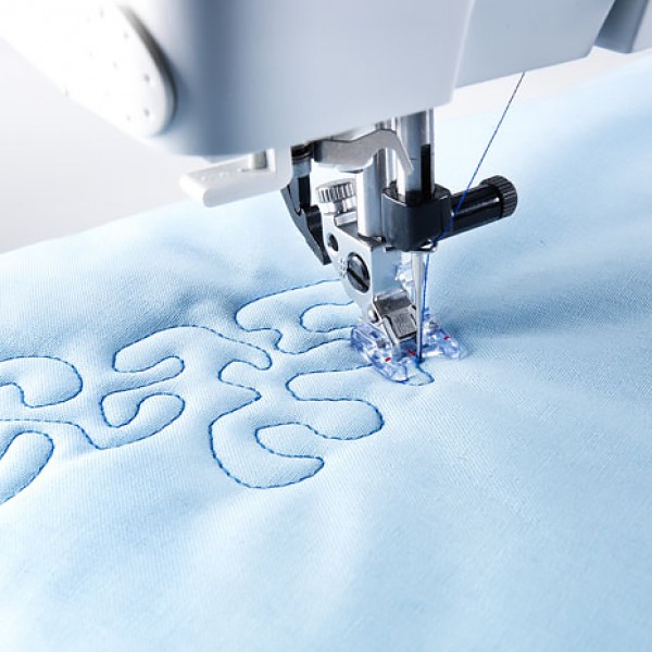 Свободная стёжка требует равномерности продвижения материала и точности. Лапка с открытой частью поможет следить за процессом.
