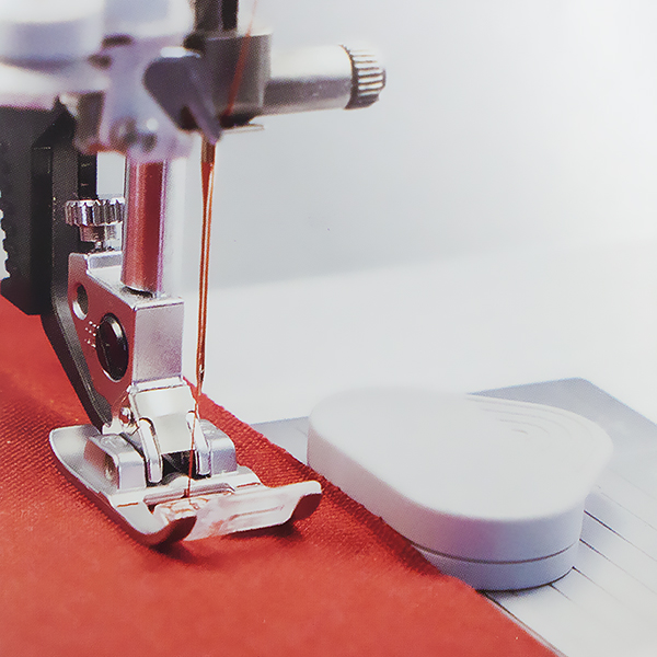 Благодаря магниту, этот направитель надёжно фиксируется на игольной пластине. Он служит ограничителем для изделия под лапкой, позволяя ткани продвигаться равномерно и обеспечивает ровную ширину припуска.