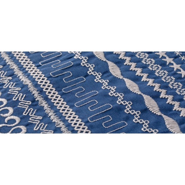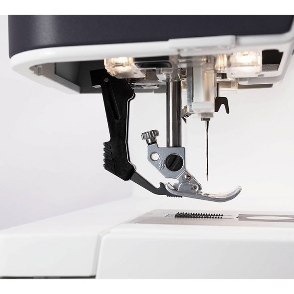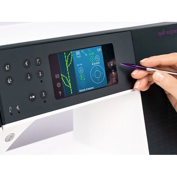 Для редактирования 9-мм строчек машина оснащена редактором Stitch Creator, а располагая их рядом можно создавать макси-строчки шириной до 52 мм (специальная лапка в комплекте). Также есть эксклюзивные стежки Pfaff (с пришиванием лент, плавающие, настрачиваемые поверх друг друга) и 4 шрифта (с кириллицей). Для сохранения собственных комбинаций (после отзеркаливания, масштабирования, изменения плотности и т. д.) есть 30 ячеек памяти. Рабочая область, освещаемая тройной подсветкой, составляет 25 см (вправо). На цветном мониторе с помощью стилуса можно задать все настройки и получить советы. Машина оборудована верхним транспортёром IDT, автонастройкой натяжения нити, автозакрепкой и автообрезкой, контролем скорости и коленоподъёмником. Сенсорная лапка гарантирует высокое качество прорезных петель.