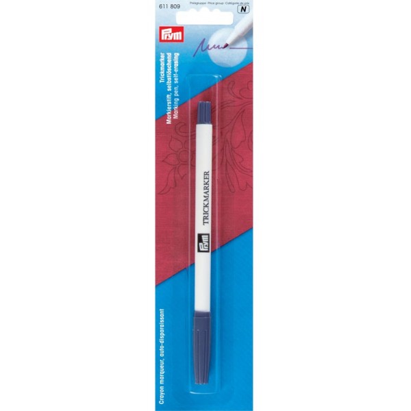 Маркер оставляет фиолетовую линию, которая исчезает через несколько дней (точное время зависит от свойств конкретного материала). Перед работой нужно провести проверку на лоскуте. Можно удалять чистой водой. Хранить маркер необходимо вертикально, располагая колпачок внизу.