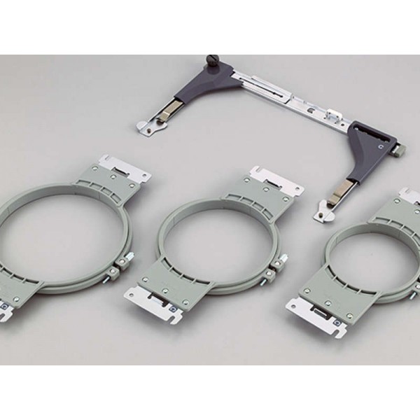 В состав комплекта входит специальный держатель для круглых пялец «С», а также три вида пялец различного диаметра (10, 13 и 16 см).