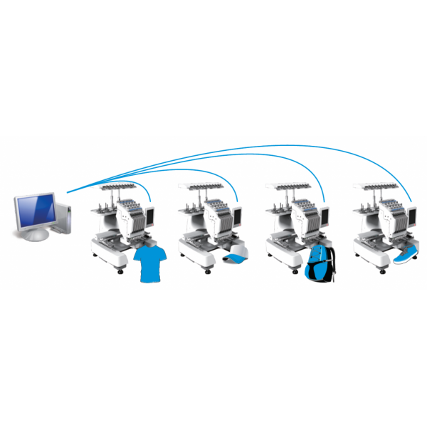 Несмотря на небольшие размеры и малый вес, машина позволяет производить вышивку на готовых изделиях и элементах кроя по всем типам материалов, включая кожу, с максимальной скоростью до 1000 стежков в минуту. Имеется лазерный позиционер и мощная LCD-подсветка поля шитья и также подсвечиваются все иглы. Машина оборудована специализированным вышивальным компьютером, который позволяет с легкостью делать трассировку рисунка, выезд пяльцев для аппликаций или настрочки, упрощает тестирование машины, а также имеет встроенные готовые латинские шрифты. Имеет возможность выбора типоразмера пялец, что исключает вероятность удара иглы по пяльцам. При выборе кепочных пялец дизайн автоматически переворачивается на 180 градусов.