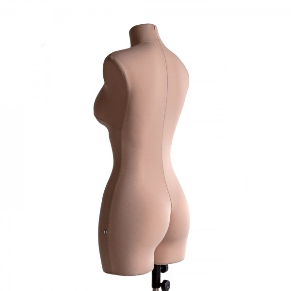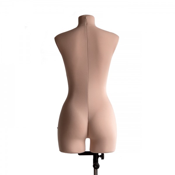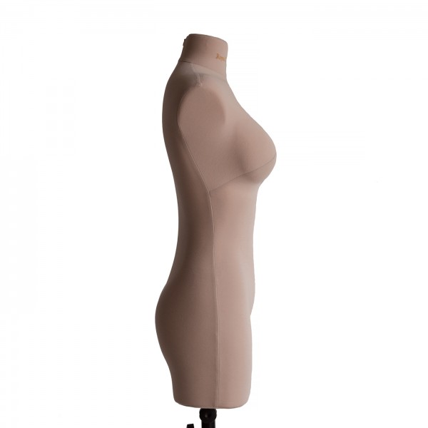 За счет использования упругой основы (в 3 раза мягче обычного) манекен можно утянуть корсетом в талии на 10 см. Съемный чехол выполнен из эластичного джерси. На манекене можно выполнять наколку и ВТО. В комплект входит удобная подставка.
