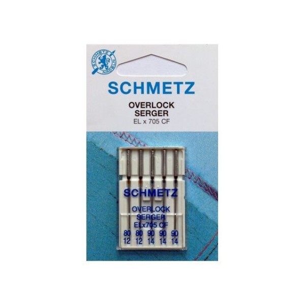 Набор из пяти игл размера 80 и 90 для строчки по тканям разной плотности. Хромированное покрытие. Предназначены для бытовых оверлоков.