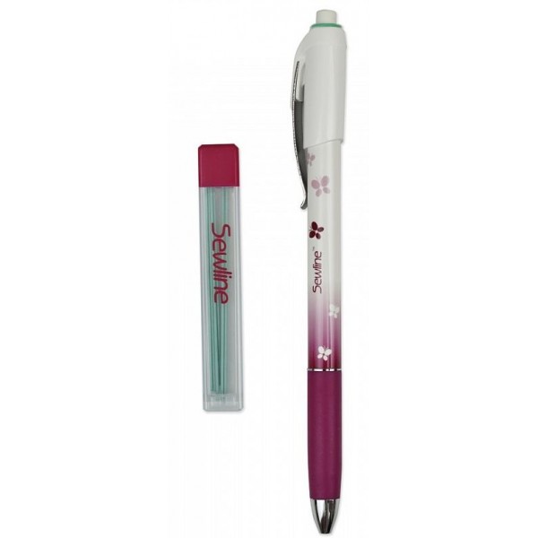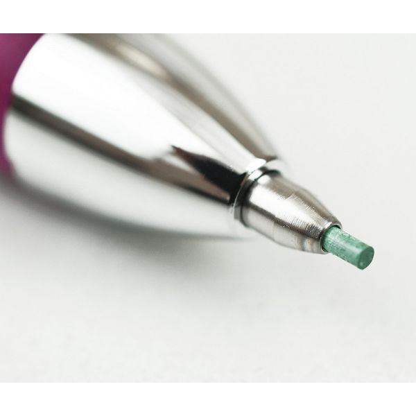Карандаш комплектуется зелёными керамическими стержнями (6 шт) диаметром 0,9 мм. Смывается водой или удаляется корректором.
