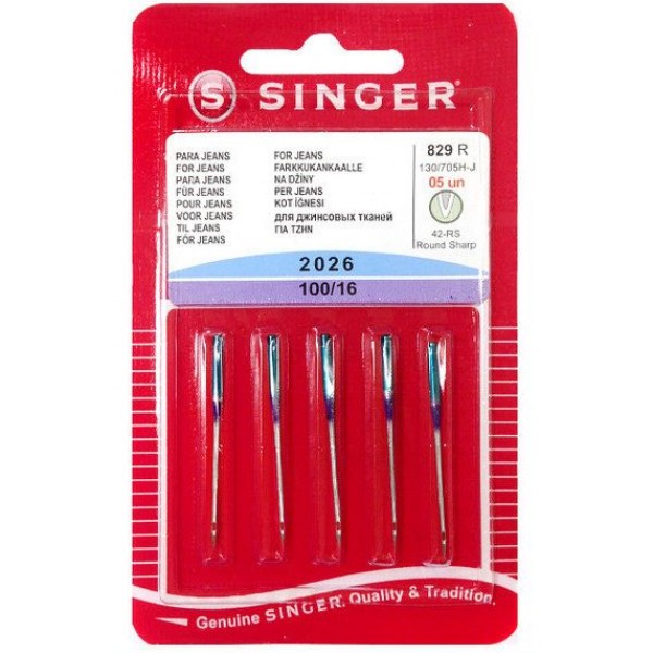 Набор фирменных игл для пошива джинсовых материалов. Пять машинных игл типа 130/705H-J позволят получить качественную строчку.