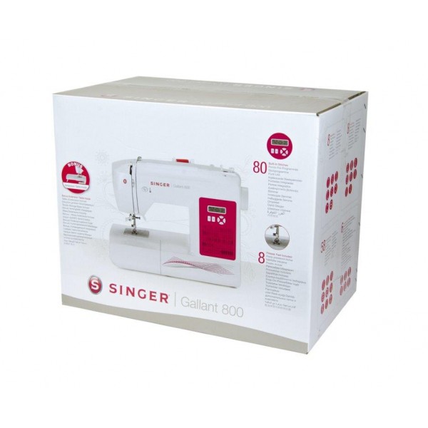 Singer Gallant 800 – машина, на которую стоит обратить внимание любителям электронных настроек, которые хотят найти оптимальный вариант за адекватную цену. Модель работает с надёжным вертикальным челноком.
